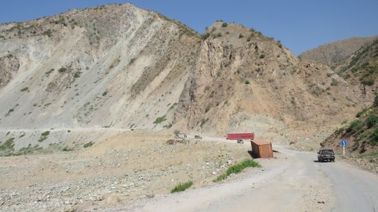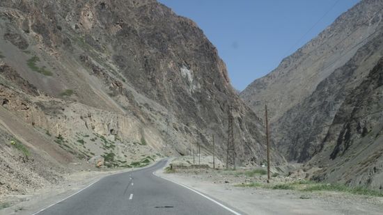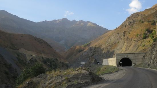 der Anzob Pass wird auf 2700m überquert bevor es durch den Anzob Tunnel wieder bergab geht.