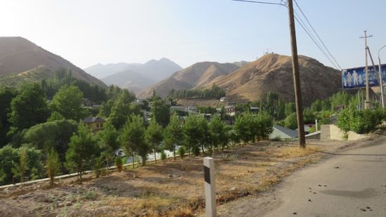 bevor wir weiter Richtung Osten fahren, Khojand, eine für uns gesichtslose Stadt mit 150.000 Ew. nur durchqueren und dann hinter Isfara gegen 22h die Grenze zu Kyrgyzstan erreichen. Die Ausreise nach kurzer Wartezeit problemlos, nur die meisten der bei der Einreise erhaltenen Zettel werden auf Vollständigkeit und angeheftete Quittung überprüft, Stempel hier, Stempel da, Schranke auf, wir dürfen weiter durchs Niemandsland.