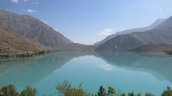 Am nächsten Morgen, Iskandar-Kul, türkis blau, spiegelglatt,