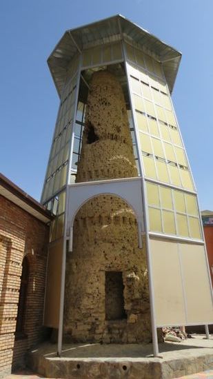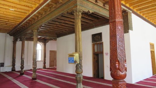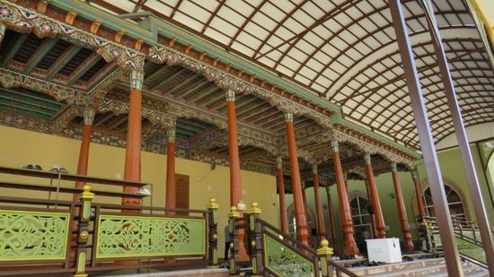 heute von einer Plexiglashaube geschützt, in der Moschee nebenan beachtenswerte alte Holzschnitzereien.