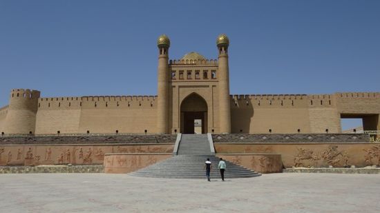 zum weltgrößten Tea House, ein Palazzo Protzi dessen Bau Unsummen verschlungen haben soll, von vorne,