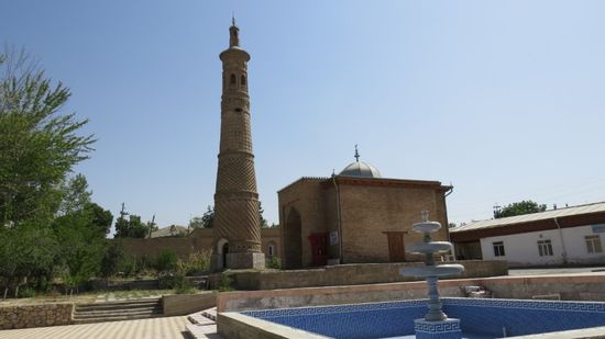 In Ayni, ein 1000 Jahre altes Minarett, einst aus Lehmziegeln erbaut,