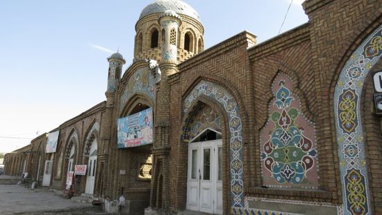 finden auch die alte Hauz-i-Sangin Moschee, deren Deckenmalereien offensichtlich als Vorbild für die in der neuen Hazrat-i-Shah Moschee dienten.