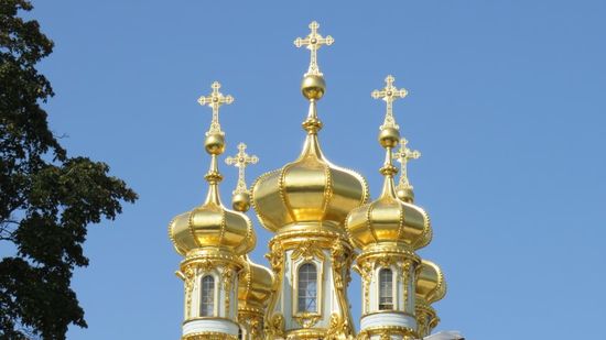 finden hinter den Polish Garden die Trinity Kirche mit ihren Domen in himmelblau mit weissen Sternchen