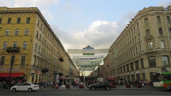 an der Nevesky pr. gelegen, eine Hauptstrasse die direkt zum Winterpalast führt. Auf dem Vorplatz Partystimmung, Livemusik an allen Ecken und Enden, eine bunte Mischung von der Nachwuchsrockband bis zu dieser Gruppe aus Ecuador.