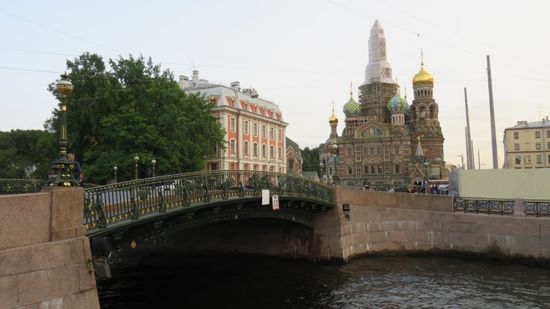 Über eine weitere Brücke zur farbenprächtigen Kirche des Blutvergießens,