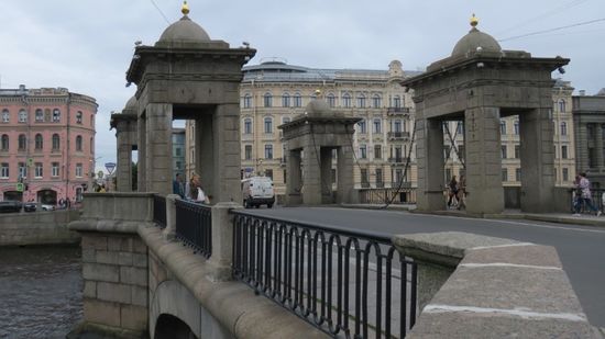 bis zur Most Lomonosova mit ihren Türmen für die Ketten des ehemaligen Hebemechanismus,