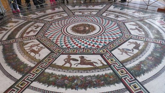 Bodenmosaic im Raum mit der Pfauenuhr,