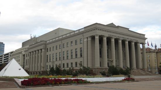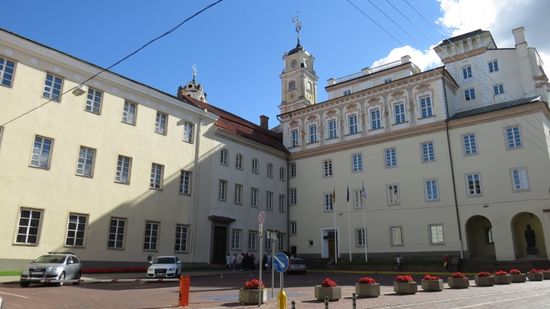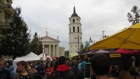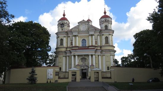 Stille Nacht, bis Morgens 6h, da rollt der erste Hobbyfischer mit seinem Schlauchboot auf dem Anhänger auf ‚unseren‘ Parkplatz um das Gummiding zu Wasser zu bringen. Als wir gegen 8h endlich aufstehen haben uns mindesten 20 Kollegen von ihm ebenfalls passiert. Aber Ehre wem Ehre gebührt, alle!!! haben versucht maximal leise zu sein, keine lauten Diskussionen, unnötige Geräusche wurden soweit irgend möglich vermieden, leider war aber an richtiges schönes tiefes Schlafen war trotzdem nicht mehr zu denken. Wir fahren weiter nach Vilnius, verbringen dort erst mal den halben Tag bei Pizza, Bier und Internet, bevor wir in die Innenstadt vordringen und in der Nähe der Staatsbibliothek einen, jetzt am späten Wochenende sogar kostenlosen Parkplatz finden, der sich auch als SP zu eignen scheint. Auf geht’s zum Teil 1 der Stadtbesichtigung, vorbei an Bibliothek