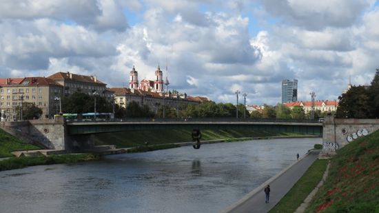 Wir gehen auf der Seite der Neu-Stadt den Neris Fluss entlang, entdecken unter jeder seiner Brücken versteckt? ein weiteres Kunstobjekt