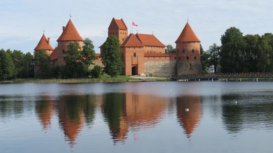 wo zwischen 1941 und 1944 ca. 70.000 Juden ermordet, erst in Massengräbern verscharrt, später dann um Spuren zu verwischen exhumiert und verbrannt wurden. Ein unheimlich anmutender Ort, der Erinnerungen an die ‚Killing Fields‘ in Kambodscha wach werden lässt. Noch ein Stück weiter, das einzige Wasserschloss des Landes in Trakai, aber es ist bereits spät, zu dunkel für gute Fotos, lassen wir uns eben am nördliche Ende des Ortes auf einem offiziellen WoMo CP(Euro 10,-) nieder und verschieben das Foto-Machen auf Morgen, denn da sieht das Wasserschloss von Trakai doch gleich viel besser aus.