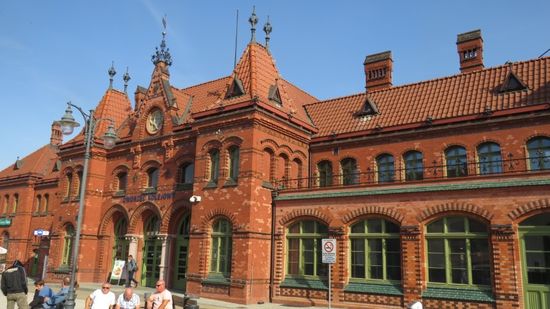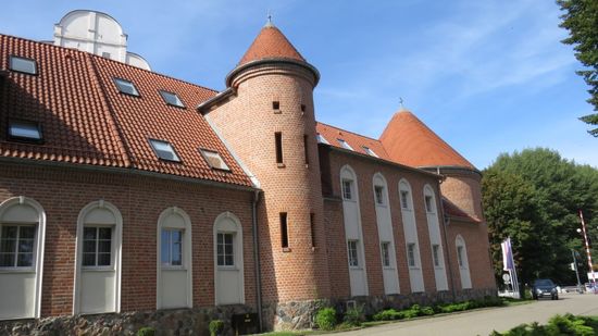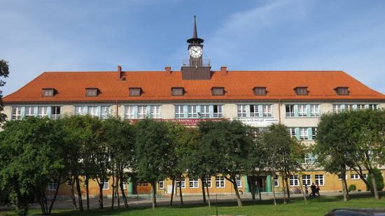 Wir fahren nach Gizycko, um uns dort auf der Tourist Info mit Broschüren und Karten für die Masurische Seenplatte einzudecken, bewundern dabei im Stadtzentrum noch diese alte Schule