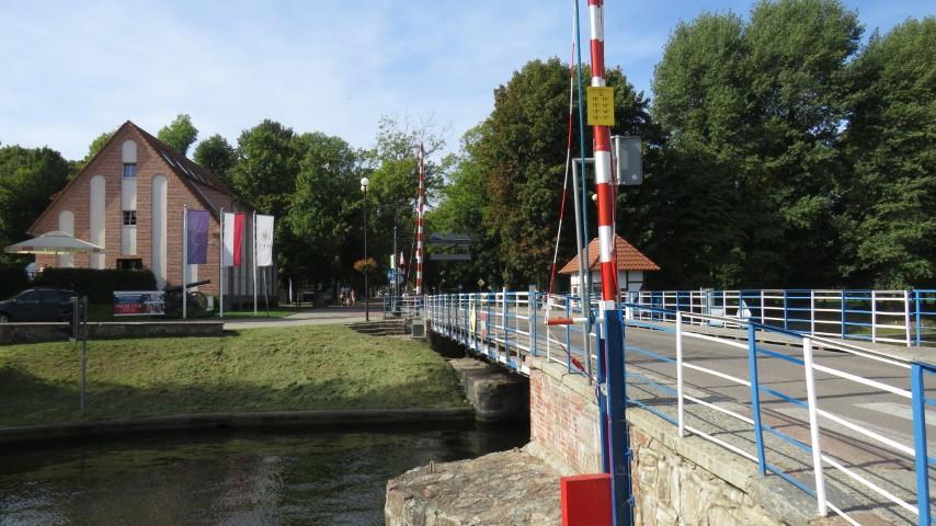Wir fahren weiter, überqueren den Nogat Fluss und werfen einen letzten Blick zurück aufs Schloss,