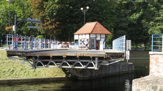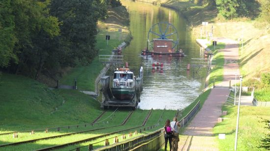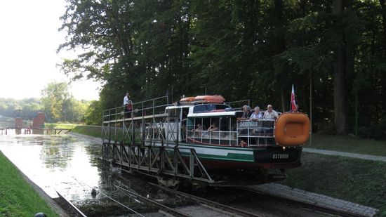 Wir fahren raus zum Elblag Kanal, wo mittels 5 solcher Rampen auf einer Strecke von 10km gut 100m Höhendifferenz überwunden werden –