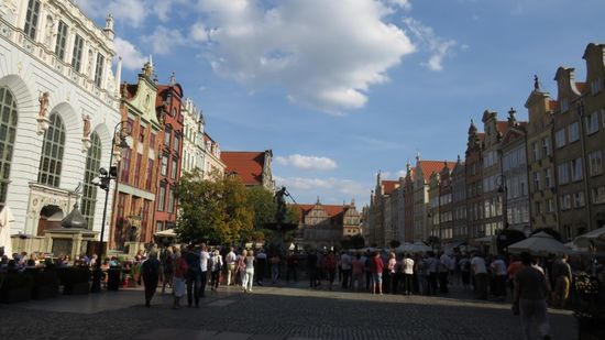 und direkt anschliessend auf der Dligi Targ (= Langer Markt) der Neptun-Brunnen, eingerahmt von all den wiederhergestellten Prachtbauten