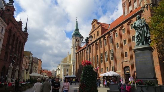In der Nacht heftige Sturmböen, ein deutlicher Temperatursturz und am Morgen dann gerade mal 10º, offensichtlich will auch hier der Herbst seinen Einzug halten. Wir fahren weiter, erreichen nach ca. 30km Torun, die Innenstadt von WWII fast ganz verschont, heute von UNESCO geschützt. Vorbei an der St. Jakob Kirche,