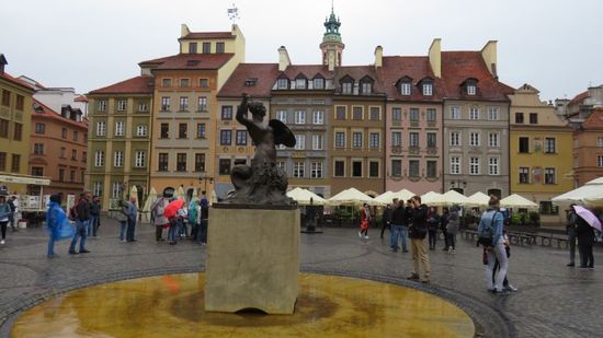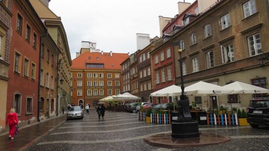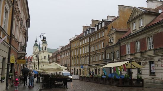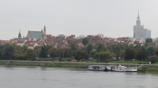 Wir überqueren im Nieselregen die Vistula, werfen dabei erste Blicke auf die wiederaufgebaute Altstadt von Warschau,