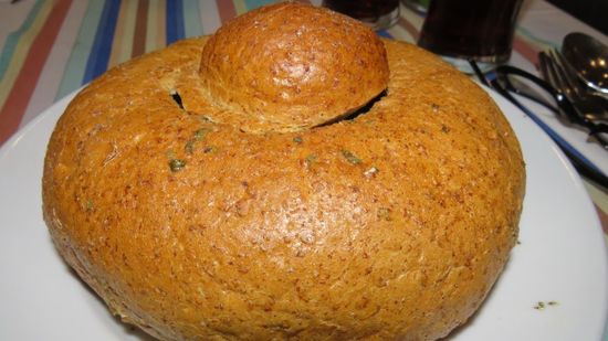 Im Specjalty Regionalne lassen wir uns Suppe im Brotlaib servieren,