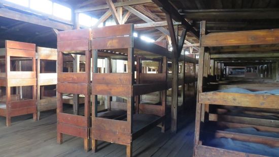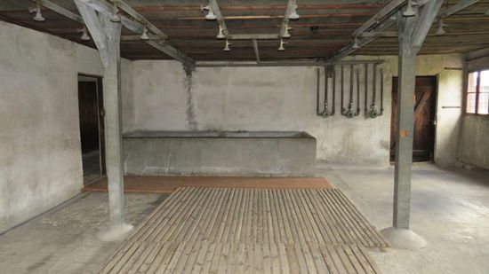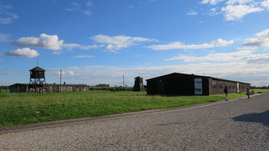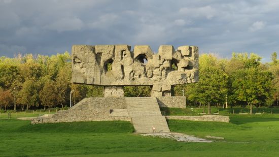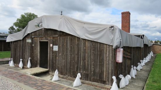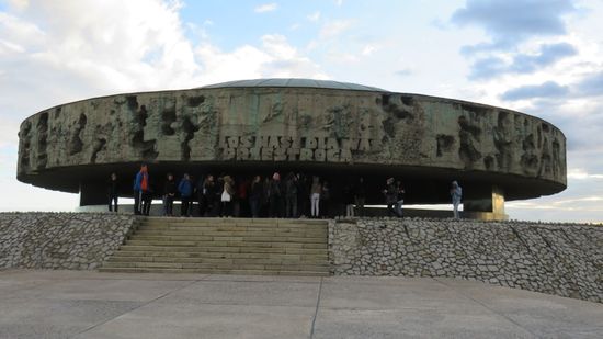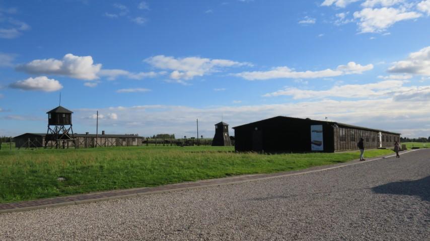 Ein paar km südlich der Stadt dann Majdanek, eines der polnischen Lager zur Endlösung. Man kann hier einen ca. 5km langen Rundgang durch das ehemalige Konzentrationslage machen (E=0), oder per Fahrzeug zwei Parkplätze auf dem Gelände ansteuern (P=PLN 5) und so den Fussweg wesentlich abkürzen, was wir bei diesem windig-kalten Wetter heute vorziehen. Die ‚Besichtigungsrunde‘ beginnt bei den Duschbaracken mit angeschlossener Gaskammer