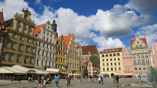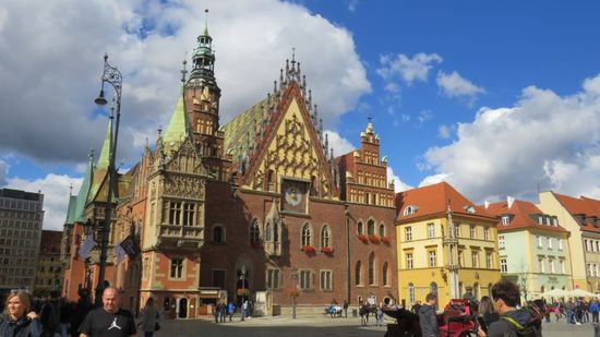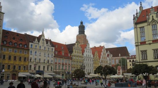 von denen es mehr als 300 Stück über die ganze Stadt verteilt geben soll. Das Herz, das Prachtstück der Stadt der Rathausplatz, Rynek,