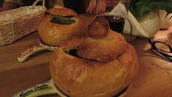 man(n) kann sich daran fast nicht sattsehen. In der Tourist Info erfahren wir, dass hier ganz in der Nähe im Restaurant Kurna Chata die traditionelle Zurek Suppe im Brotlaib serviert wird, da müssen wir doch gleich mal hin