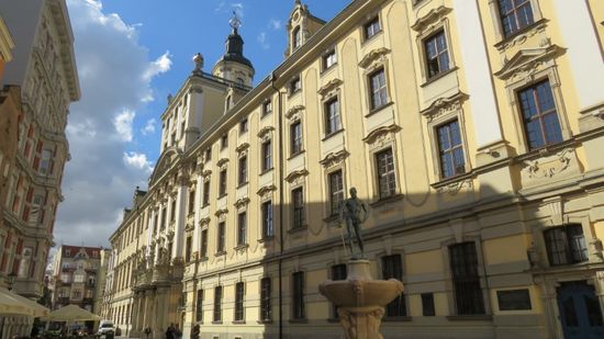 Wir erreichen Wroclaw, vielen auch unter Breslau bekannt, freuen uns gleich mal darüber, dass hier die Parkscheinautomaten Sa. und So. ‚ausser Betrieb‘ sind und finden auch recht schnell einen Parkplatz in der Nähe des Theaters. Neben schönen alten Häusern