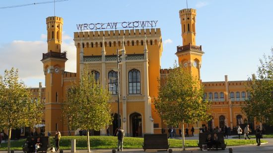 einer Show-und Sporthalle, 1913 von Max Berg entworfen und seit 2006 Weltkulturerbe und zum soeben frisch renovierten Bahnhof von Wroclaw,