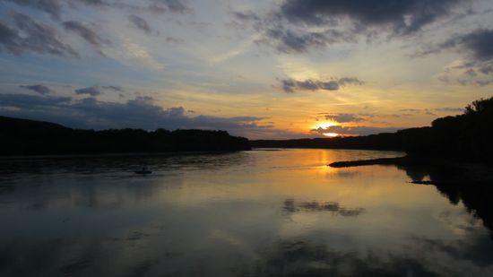 kurz vor Bratislava an der Einmündung der March in die Donau gelegen, einst eine mächtige Burg, dann von den Franzosen 1806 zerstörte. Heute für uns Sonnenuntergang an der Donau
