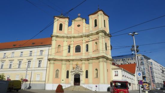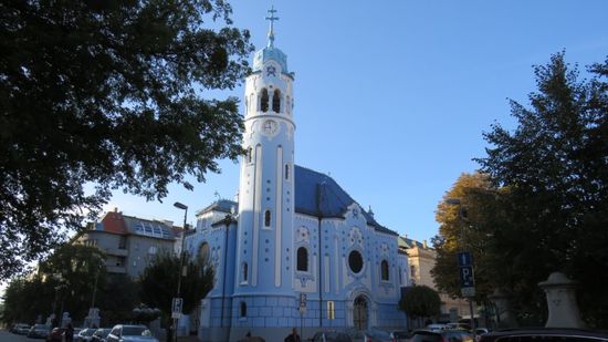 auf einem riesigen Parkplatz kostenlos!!! sein Auto abstellen und ggf. sogar übernachten kann. Direkt nebenan praktischerweise die Stary Most, die alte Brücke über die Donau, die heute nur noch von Fußgängern, Radfahrern und der Strassenbahn benutzt werden darf und die direkt zur Altstadt führt. Wir kommen an der Blue Church vorbei, die Aussen