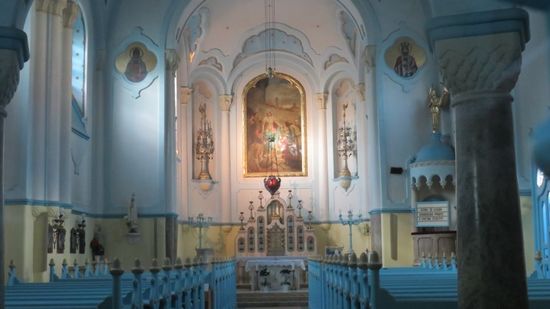 wie Innen in ca. 40 verschiedenen Blautönen erstrahlt,