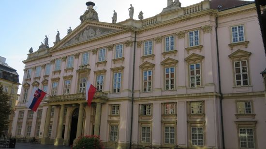 in dem nach der Schlacht bei Austerlitz der Friede von Pressburg unterzeichnet wurde, alten Bürgerhäusern