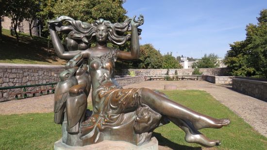 von einer der vielen Skulpturen, die die Stadt schmücken,
