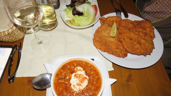suchen und finden sogar wieder eine kleine Buschenwirtschaft, die wir vor gut 10 Jahren mal mitten in der Stadt entdeckt haben und fahren schliesslich weiter nach Gumpoldskirchen, das seit 1973 zu meinen Wasserlöchern zählen. Abendessen beim einem der Heurigen (Kamper),