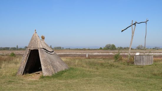 kommen dabei an diesen Puszta Hirten Open Air Museum, mit Show Objekten wie Unterstand und Brunnen vorbei