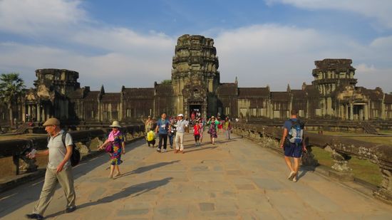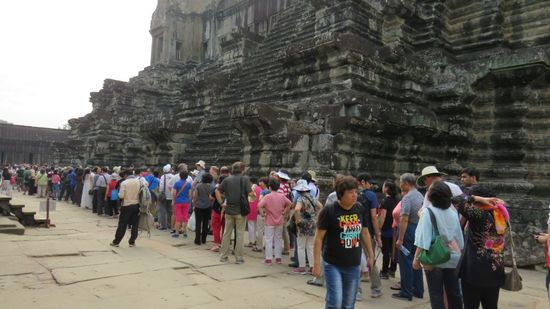 Nachdem gestern ja wegen Buddha Feiertag der Bakan, der innerste Bereich von Angkor Wat, gesperrt war, wollen wir dessen Besichtigung heute nochmals in Angriff nehmen. Die Wartezeit gerade mal 45min,