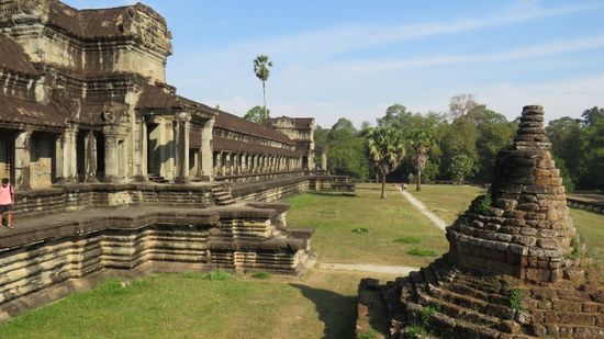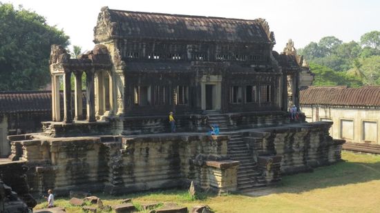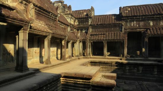 Die Geschichte von Angkor Wat kann bei Wikipedia nachgelesen werden, über die üblichen Besuchsrouten gibt es ausreichende Info im Internet, wir beschränken uns hier auf Bilder, Szenen die uns beeindruckt haben, wie dieser Innenhof,