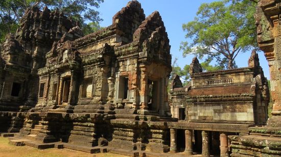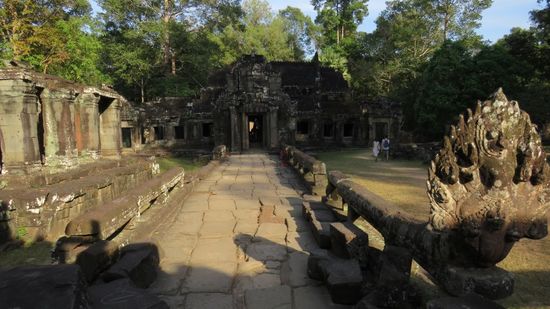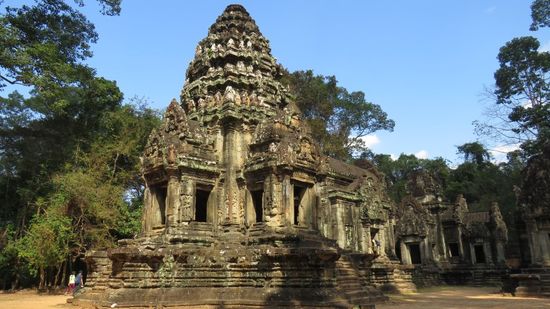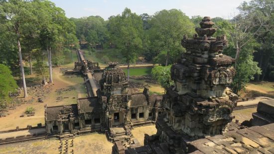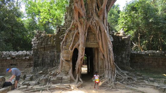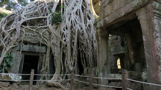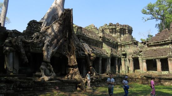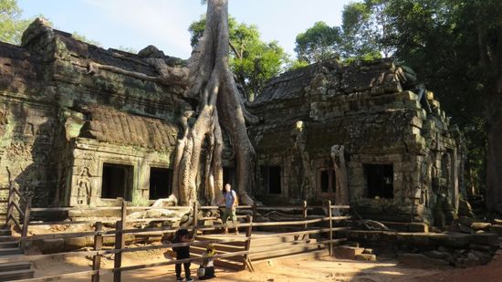 zur Belohnung ein herrlichen Rundblick. Ta Prohm beindruckt durch seine Riesenbäume,