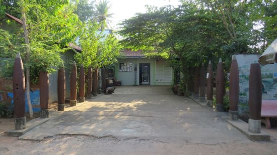 Unser erster (Wunsch-)Stopp heute das Land Mine Museum (E=US$5,-pP), wo der Besucher bereits von dieser Galerie amerikanische Bomben empfangen wird.