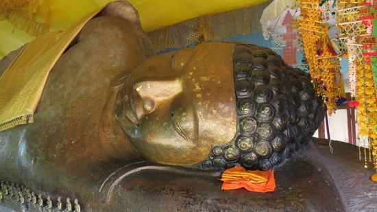 Droben am Phnom Kulen angekommen die Qual der Wahl, sich per Moped zu den restlichen ‚15 ‚Besichtigungspunkten‘ fahren lassen – oder sich, wie wir auf das wesentliche zu konzentrieren. Wir besuchen den Reclining (liegenden) Buddha,