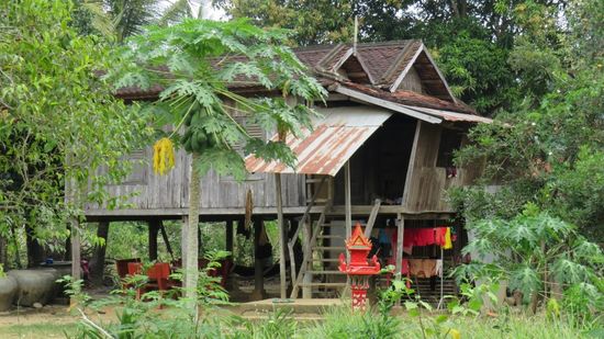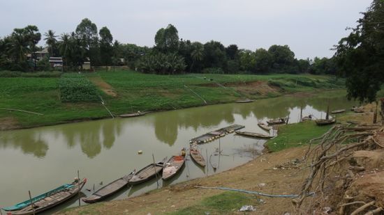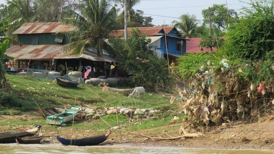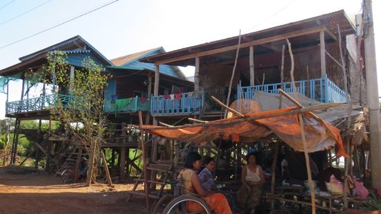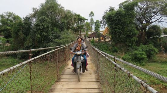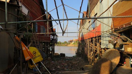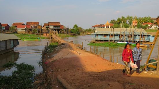 Zurück nach Battambang, einmal quer durch und dann weiter Richtung Süden, auf unseren Wunsch über Nebenwege dem Fluss entlang zu den Fishing Villages, die mittlerweile sogar durch schmale Hängebrücken miteinander verbunden sind.