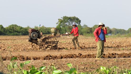 Bauern beim Pflügen ihrer Reisfelder zuzusehen,