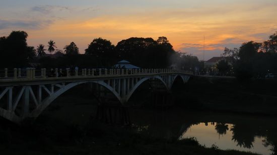 Noch ein Stückchen dem Sangker River, entlanggewandert, ein leichtes Abendessen am Fluss, es wird Zeit ins Bett zu gehen.