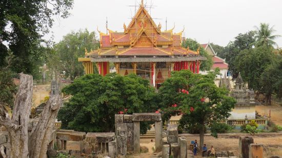 der noch gut hundert Jahre älter als Angkor Wat ist. Direkt davor ein neuerer, aktiver Buddha Tempel mit angeschlossener Schule