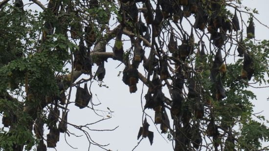 sehen ein paar Bäume voll von diesen Fruit Bats (=Flying Fox, Fliegende Hunde)