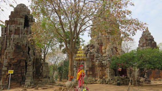 Zuerst geht es Richtung Norden von Battambang zu den Ruinen des gut 1000 Jahre alten Aek Phnom Temple,