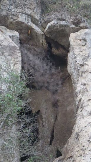 Ähnlich wie in den Carlsbad Caves in New Mexico hausen auch in dieser Höhle so ca. 1Mio. Fledermäuse, die jeden Abend zur Futtersuche nach Sonnenuntergang die Höhle verlassen. Wir sitzen an bereitgestellten Tischen und Stühlen,