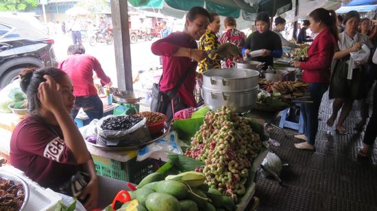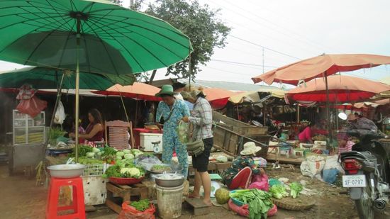 Sok hat uns wieder ein Auto mit Fahrer besorgt, ($100/Tag bei ca. 450km zurückgelegter Strecke) der uns mal wieder überpünktlich (7:30 statt der vereinbarten 8:00) vom Hotel abholt. Über zahlreiche lokale Märkte am Wegesrand