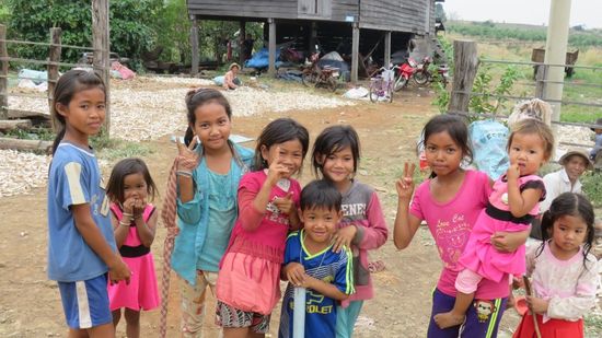Seit langen fallen uns am Strassenrand sowas wie Holzstückchen auf, die da zum Trocknen ausgelegt sind, auf Rückfrage erklärt unser Fahrer, dass das anscheinend kartoffelartige Wurzeln (Yams??) sind hier angebaut, geerntet, gehackt und trocknet werden, um sie dann in Thailand zu Viehfutter verarbeiten zu lassen. Unser Versuch diese Wurzelstücke zu fotografieren ging natürlich nur unter reger Beteiligung