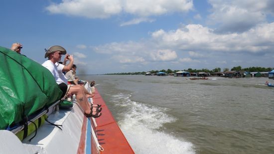 wer Tragflügelboote wie die Flying Dolphins in Griechenland kennt, wird von der Reisegeschwindigkeit hier enttäuscht sein, aber trotzdem, wir fahren recht zügig über den See, dann auf dem Fluss Richtung Süden, sehen Floating Villages und Fischerdörfer in allen Variationen,