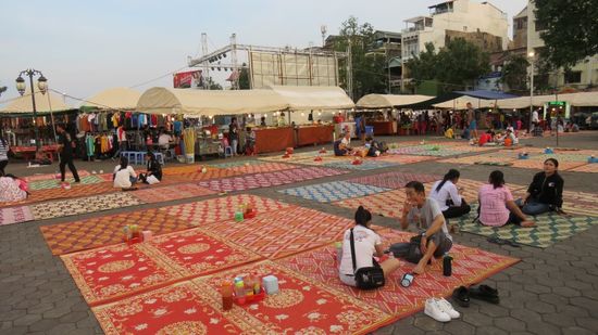 als die zahllosen T-Shirt, Hosen, Schuhe, Taschen etc. Verkaufsstände, deren Geschäftsmodell / Verkaufsstrategie wir immer noch nicht verstanden haben. In einer Wühlkiste kann man ja kramen, aber wie soll man in einem 3qm grossen Kabuff, in dem gefühlte 10.000 Hosen ordentlich in halbmeterhohen Türmen gestapelt rumliegen irgendetwas auswählen, finden? Wir brechen unsere Suche ab, erfrischen uns beim aus Siem Reap schon bekannten Mexikaner und gehen zum Hafen um uns Boots- und Bustickets für die nächsten Überlandreisen zu kaufen. Noch eine ergebnislose Runde über den Nachtmarkt, aber auch hier ein Angebot, das irgendwie aus Ladenhütern von Siem Reap zu bestehen scheint. Irgendwie scheinen die Interessen der Touristen hier anders geartet zu sein als in Siem Reap. Während dort ein südländisch anmutendes Strassen-Nachtleben mit Essen und Musik vorherrscht, scheint hier mehr eine an einschlägig bekannte Gegenden von Thailand erinnernde ‚Barkultur‘ vorzuherrschen. ‚Working Ladies‘ an allen Ecken und Enden,…